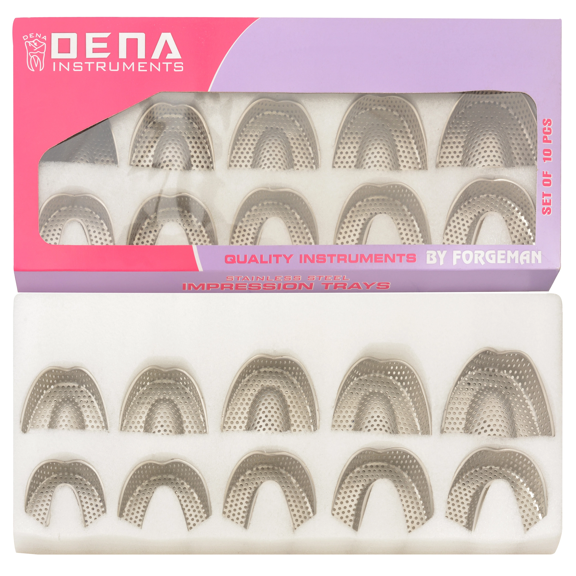 تری‌ها از دو جنس فلزی (Stainless Steel) یا پلاستیکی ساخته می‌شوند که معمولا روی آن‌ها شیارها و سورخ هایی وجود دارد که مواد قالب گیری در حین فشار قالب گیری از آن بیرون آمده و در درون آن سورخ‌ها و شیارها گیر می کند و ساختاری برای مواد قالب گیری که به شکل خمیری هستند شکل می‌دهد و در نتیجه مواد به تمام اطراف دندان و لثه نفوذ کرده و تمام نواحی قالب گیری را با دقت کامل ثبت می کند.